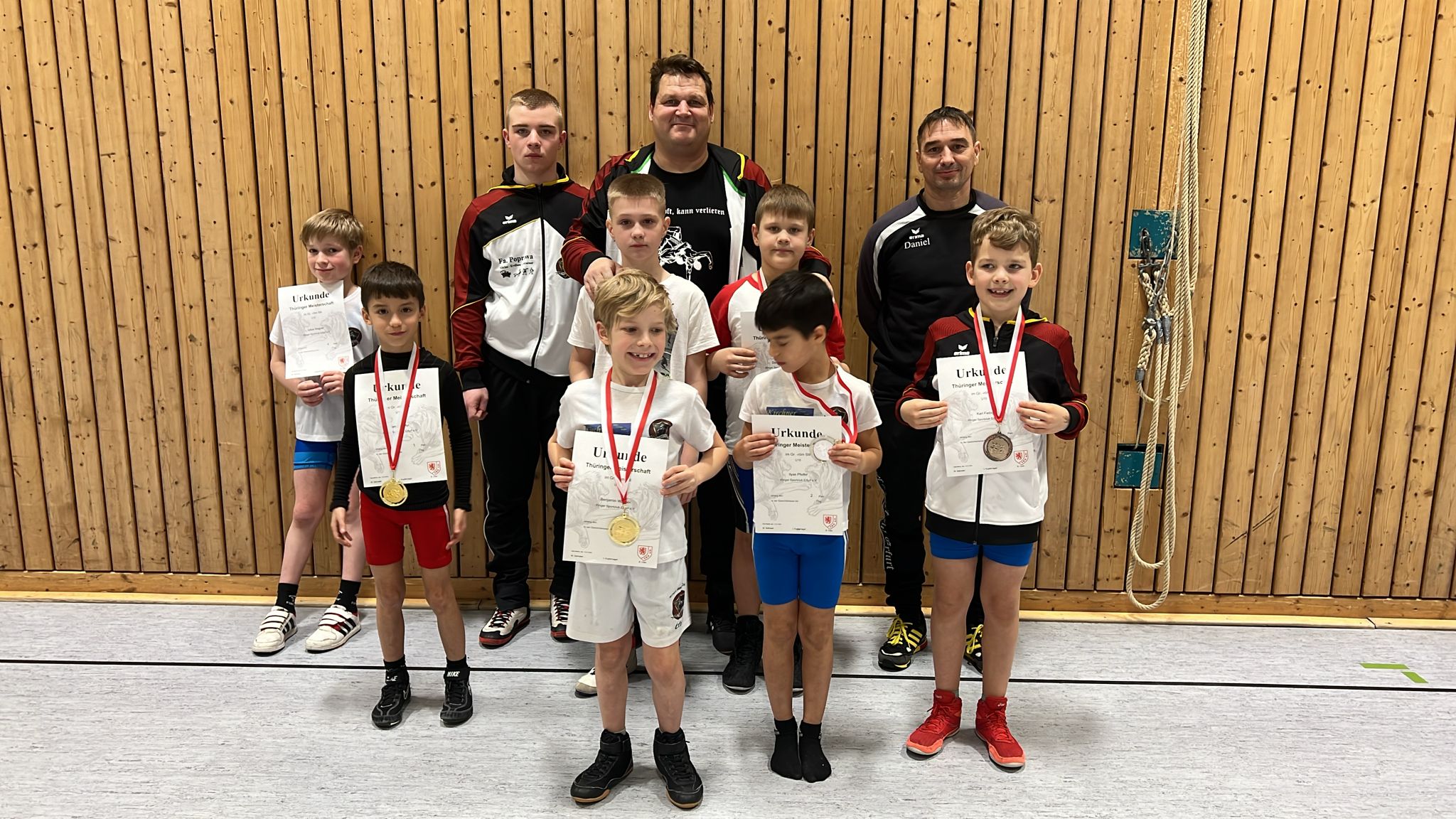 Am 13. Januar fand die 1. Thüringenmeisterschaft im klassischen Ringen 2024 statt, ein Ereignis, das erstmals im neuen Jahr die Spannung und den Enthusiasmus der Ringerszene in der Region vereinte. Unser Verein war stolz darauf, mit insgesamt 8 Sportlern an diesem Wettbewerb teilzunehmen. Die harte Arbeit, die unsere Athleten in ihr Training gesteckt hatten, sollte sich an diesem Tag auszahlen. Die Wettkämpfe begannen mit einer Atmosphäre der Aufregung und Nervosität, aber unsere Sportler zeigten von Anfang an ihre Entschlossenheit und ihren unerschütterlichen Kampfgeist. Jeder Kampf war ein intensives Duell, in dem Technik, Kraft und Ausdauer auf die Probe gestellt wurden. Am Ende des Tages konnten wir mit Stolz verkünden, dass fünf unserer Athleten es auf das Podest geschafft haben. Zwei unserer Kämpfer sicherten sich den 3. Platz, während zwei weitere den 2. Platz erreichten. Besonders herausragend war die Leistung eines unserer Athleten, der den 1. Platz in seiner Gewichtsklasse erkämpfte. Diese guten Ergebnisse sind das Ergebnis von unzähligen Stunden harten Trainings und dem unermüdlichen Engagement unserer Sportler und Trainer .Die Thüringenmeisterschaft war nicht nur ein Beweis für die individuellen Fähigkeiten unserer Athleten, sondern auch für den Zusammenhalt und die Teamarbeit innerhalb unseres Vereins. Jeder Sieg war ein gemeinsamer Erfolg, der die Verbundenheit und den Stolz unserer Ringerfamilie stärkte. Wir gratulieren allen Teilnehmern zu ihren herausragenden Leistungen und sind zuversichtlich, dass diese Erfolge nur der Anfang einer erfolgreichen Wettkampfsaison sind. Unsere Sportler haben bewiesen, dass sie zu den Besten gehören und wir sind zuversichtlich, dass sie auch in Zukunft weitere Siege und Triumphe erringen werden.